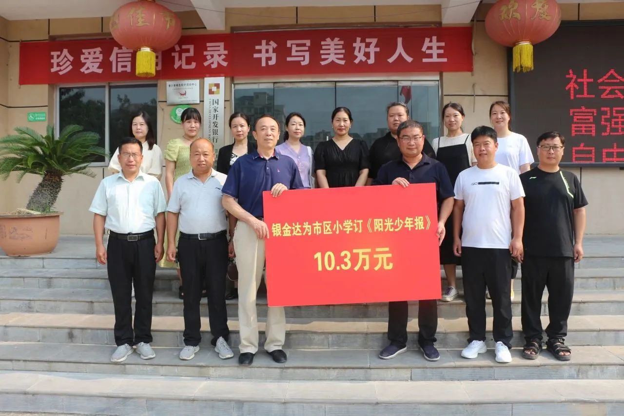 8月17日,銀金達為衛輝市區小學訂閱2023-2024學年《陽光少年報》儀式在衛輝市教體局舉行。銀金達集團黨委副書記、工會主席楊鳳瑞受黨委書記、董事長閆銀鳳委托出席捐贈儀式,衛輝市教體局黨組成員、副局長焦元玉接受捐贈。