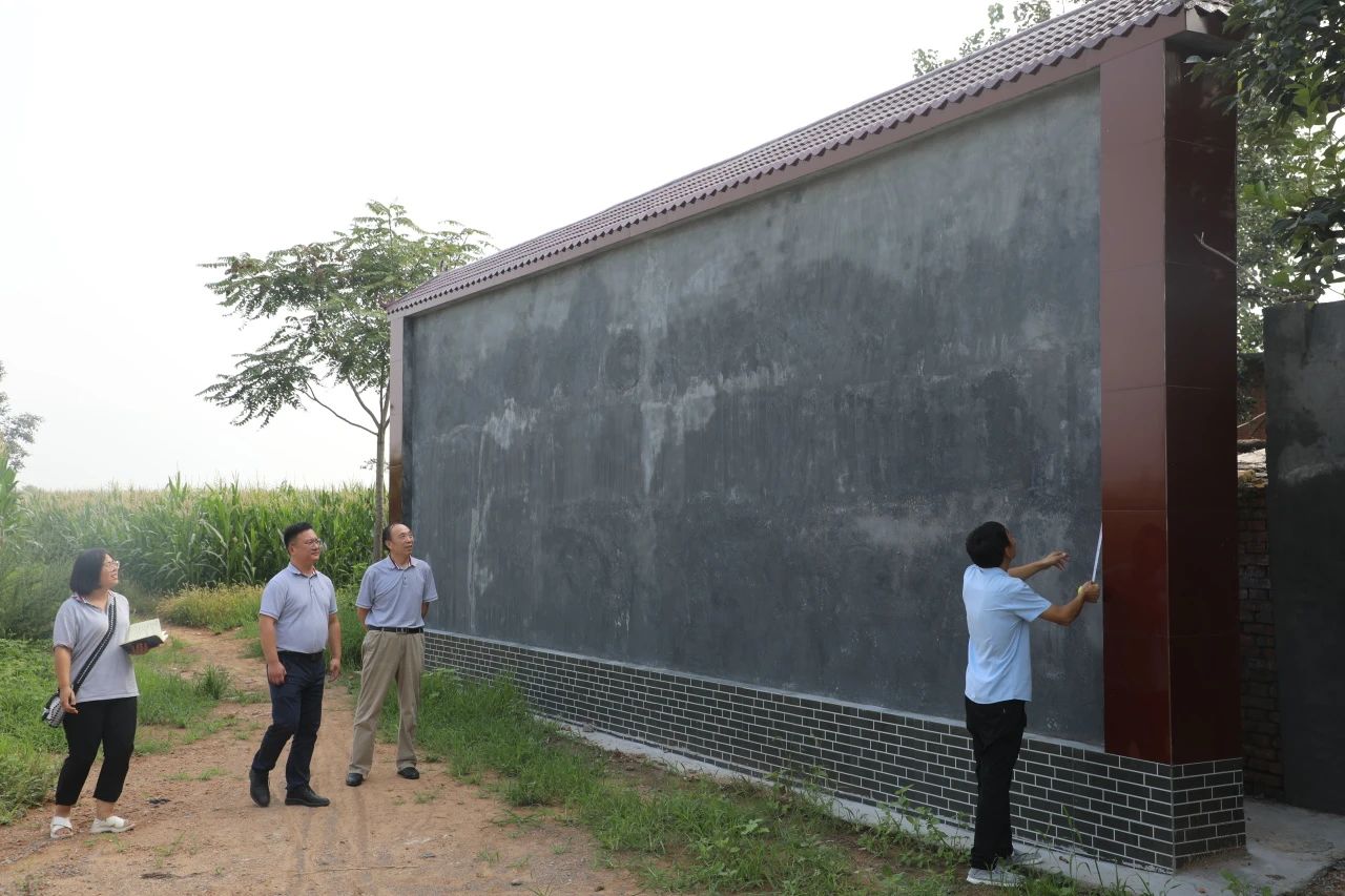 新鄉(xiāng)市職業(yè)技術(shù)學(xué)院美術(shù)教授侯壯莊、衛(wèi)輝市委黨校原副校長侯秋莊對文化墻和舞臺背景墻美術(shù)設(shè)計提出專業(yè)意見和建議。
