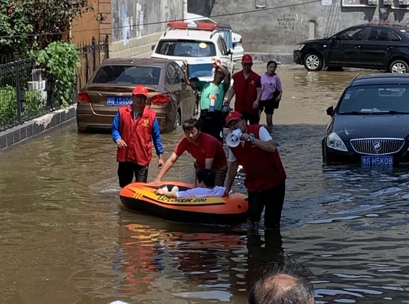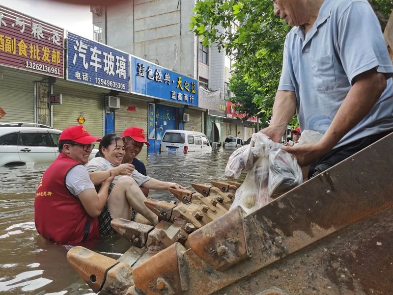 創(chuàng)新中心(新鄉(xiāng)市高新區(qū))黃曉謹(jǐn)(創(chuàng)新中心黨支部書記、集團(tuán)副總裁)領(lǐng)隊(duì)帶領(lǐng)創(chuàng)新中心19人自救搶險(xiǎn);