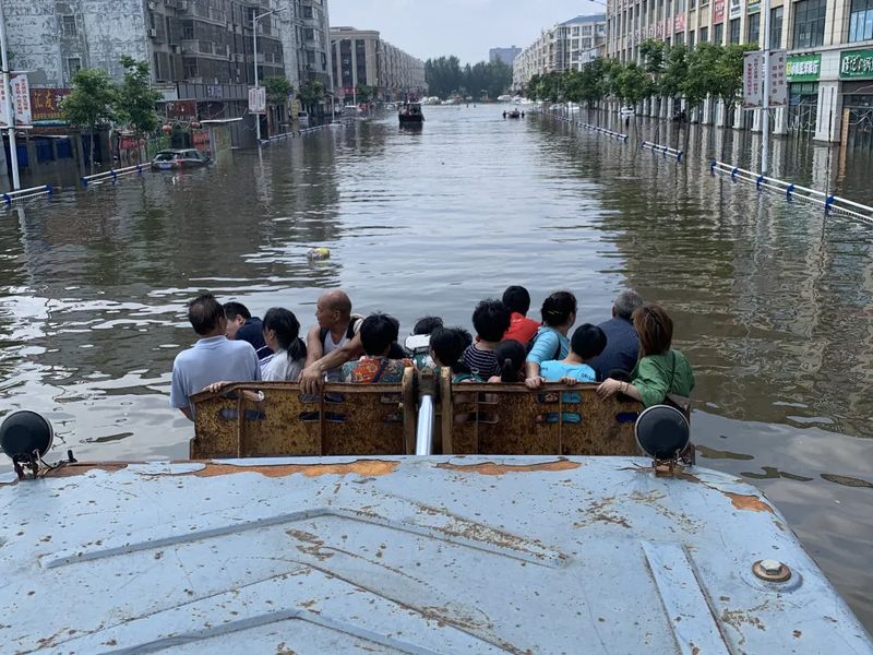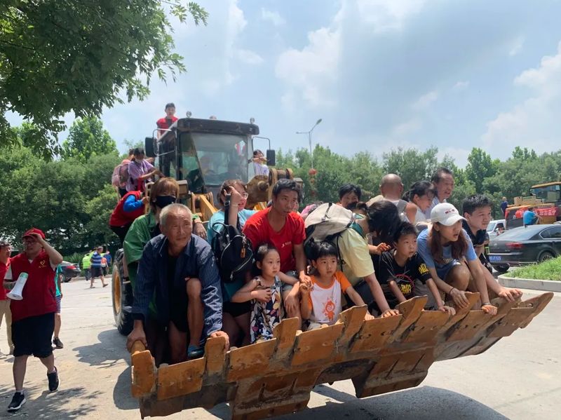 3、李沅鴻領(lǐng)隊(duì)12人出動(dòng)2輛鏟車、2艘橡皮船、2輛班車、1輛集裝箱車水中救援職工及其家屬和受災(zāi)群眾,運(yùn)送至銀金達(dá)安置點(diǎn),并參加李良屯護(hù)堤防汛;